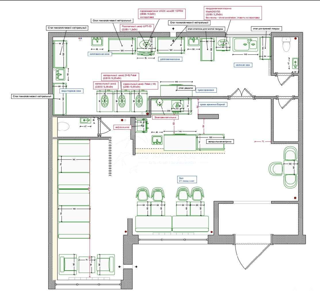есть проект КАФЕ (представлен в галерее) с расстановкой оборудования