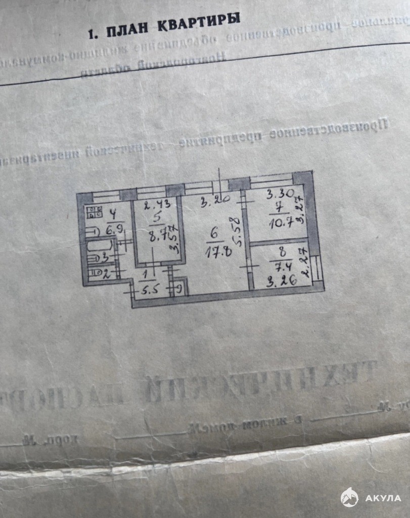 Просторная светлая квартира общей площадью 62, 0 кв.м. Расположена на 4 этаже. В квартире 4 жилых комнаты: 17, 8, 10, 7 , 8, 7 и 7.4 квадратных метра.