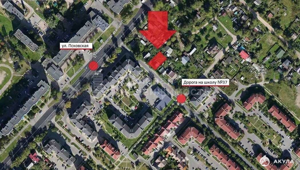 Продается земельный участок в Псковском районе города. Общая площадь участка 616 м2.