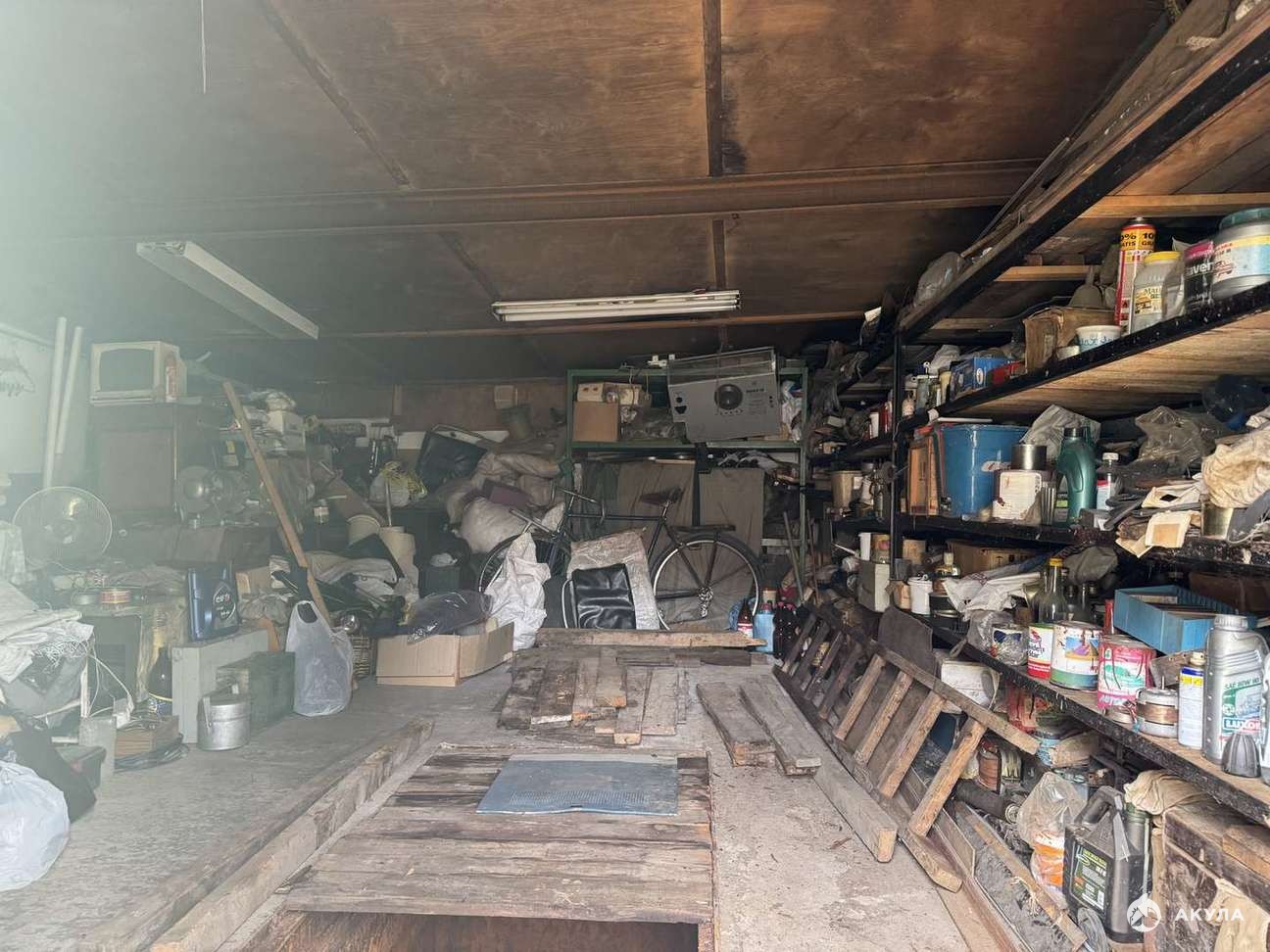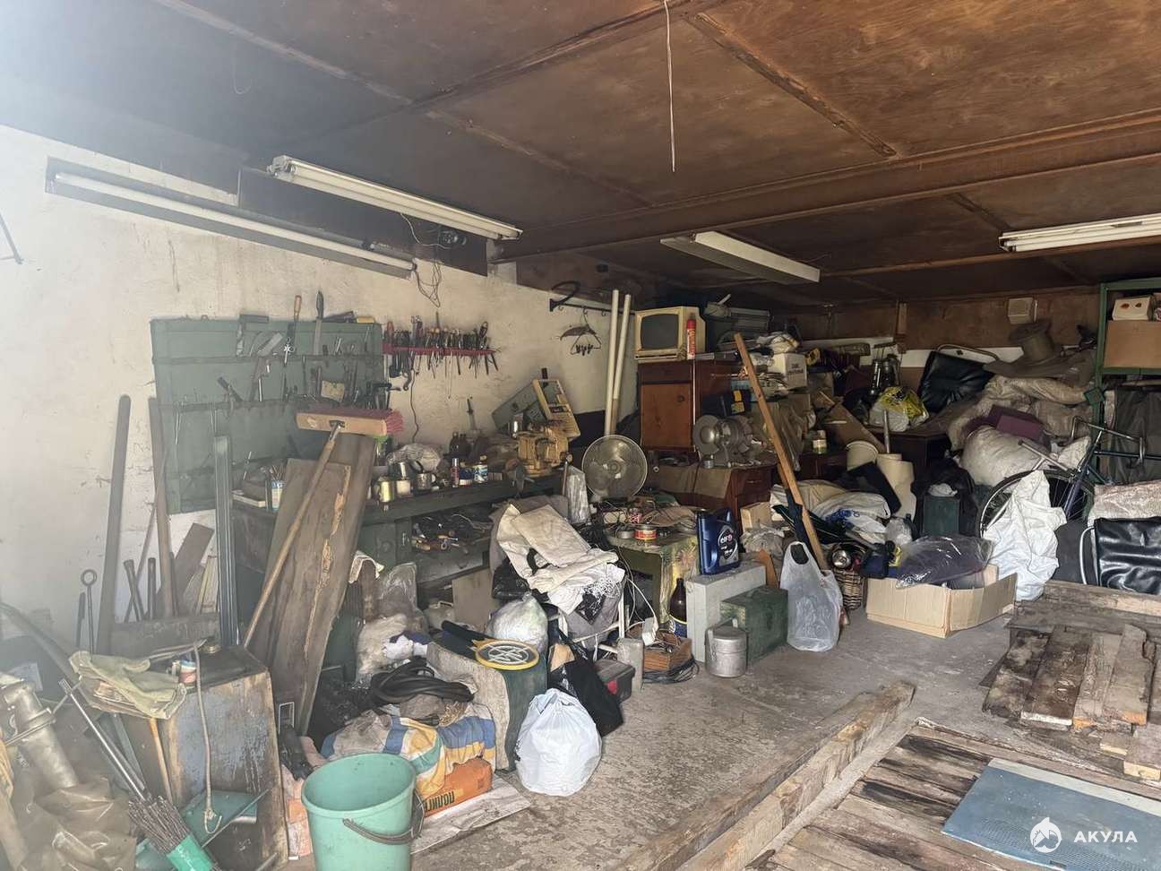 В гараже остаются стеллажи, по договорённости верстак.