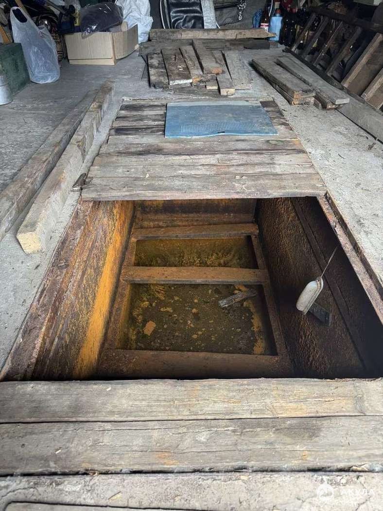 кирпичный гараж, есть смотровая яма и кессон.