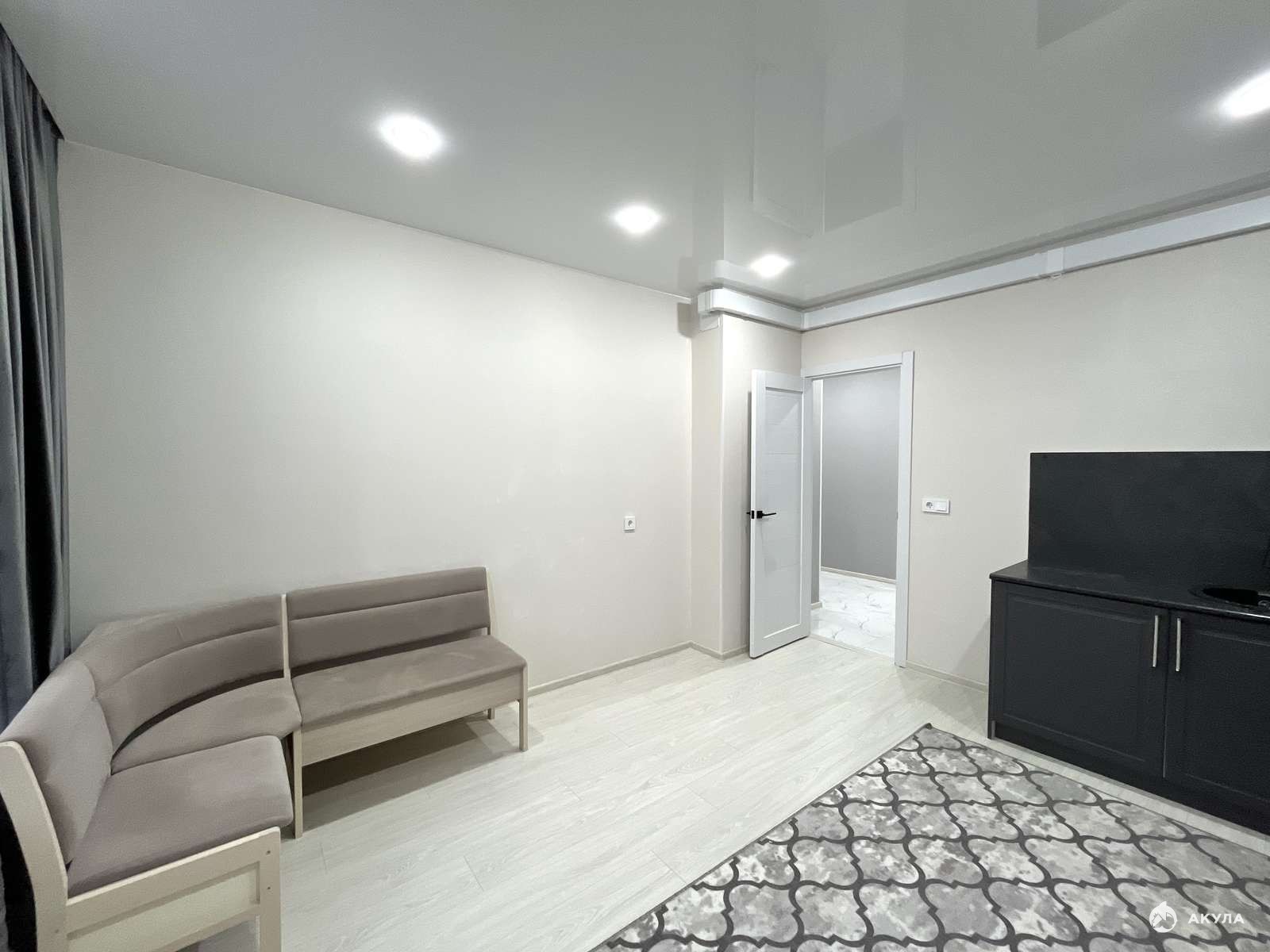 - Во всей квартире натяжные потолки.