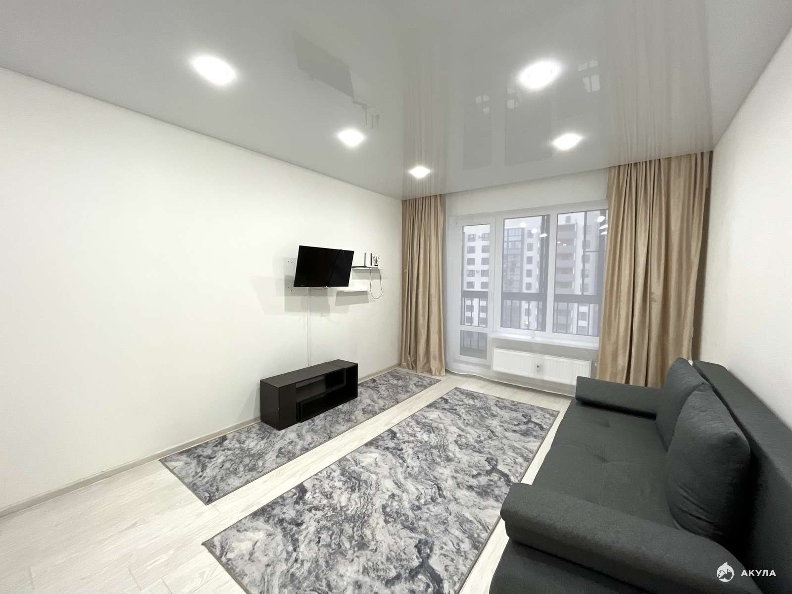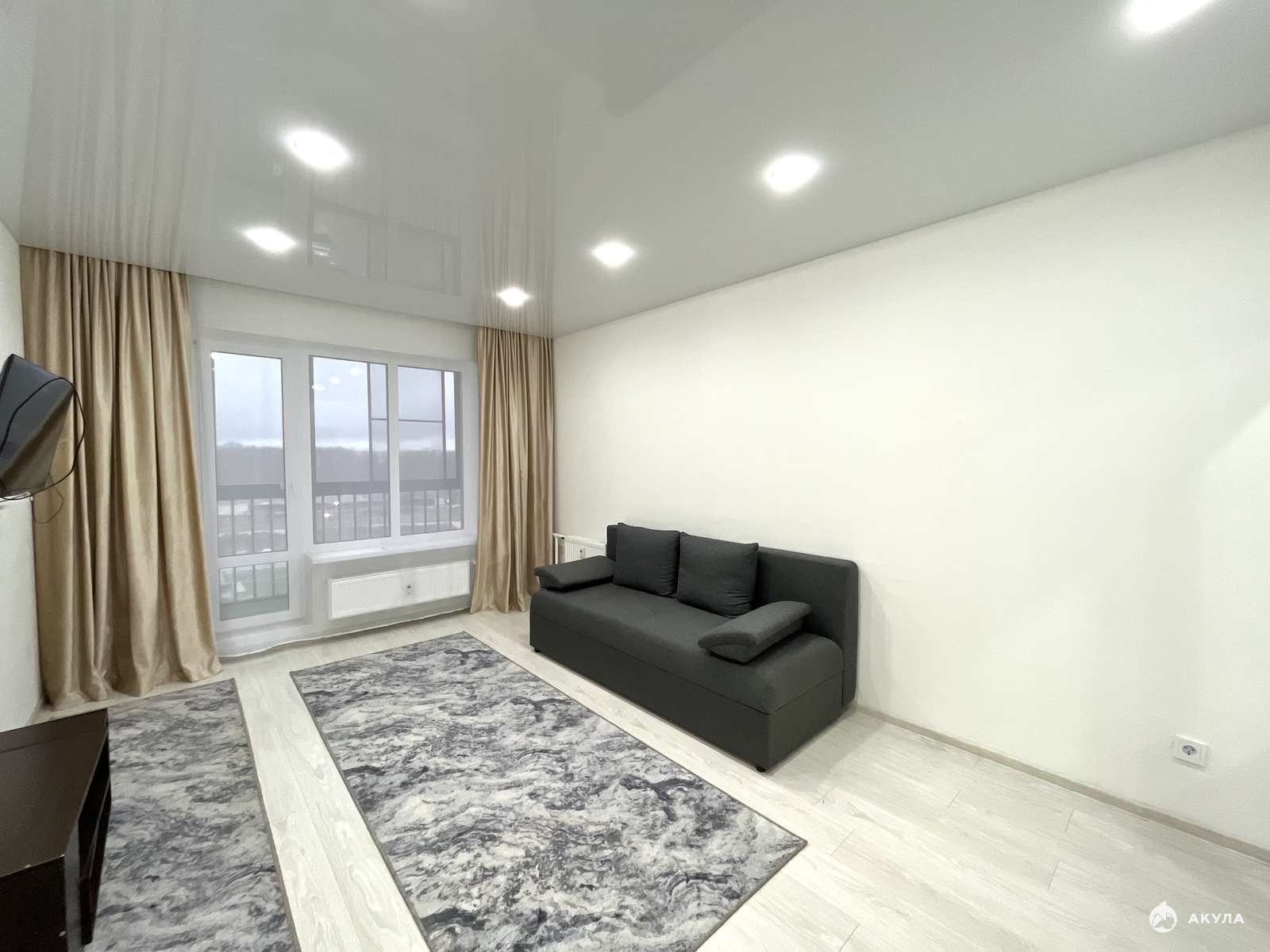 - В комнате раскладной диван, шкаф и ТВ
