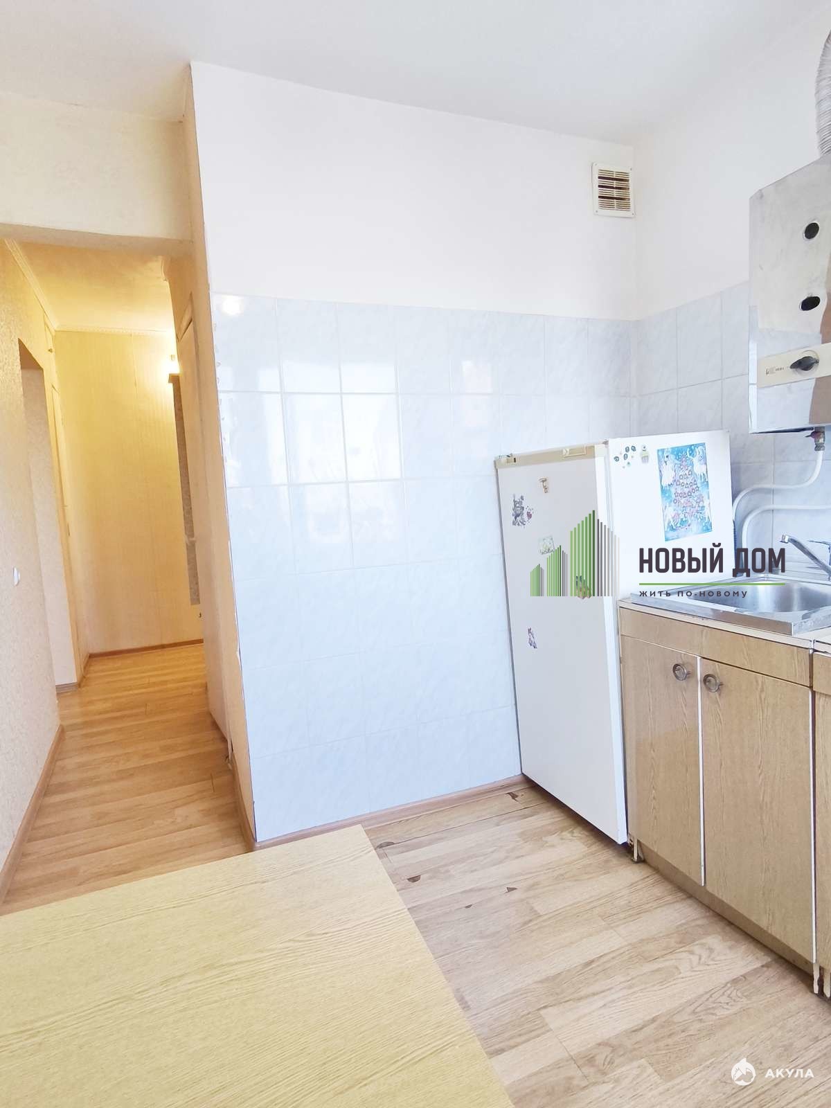 — В прихожей, комнате и кухне на полу - ламинат