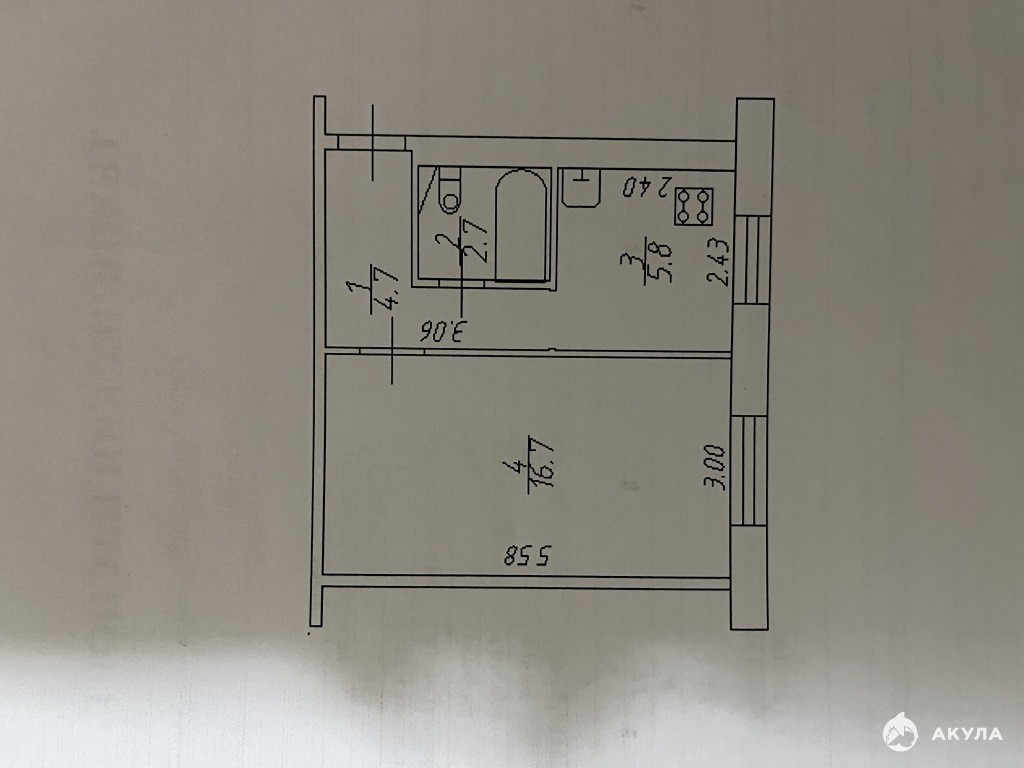 Кухня - 5, 8 кв. м., комнaта- 16, 7 кв. м. С/у совмещенный.