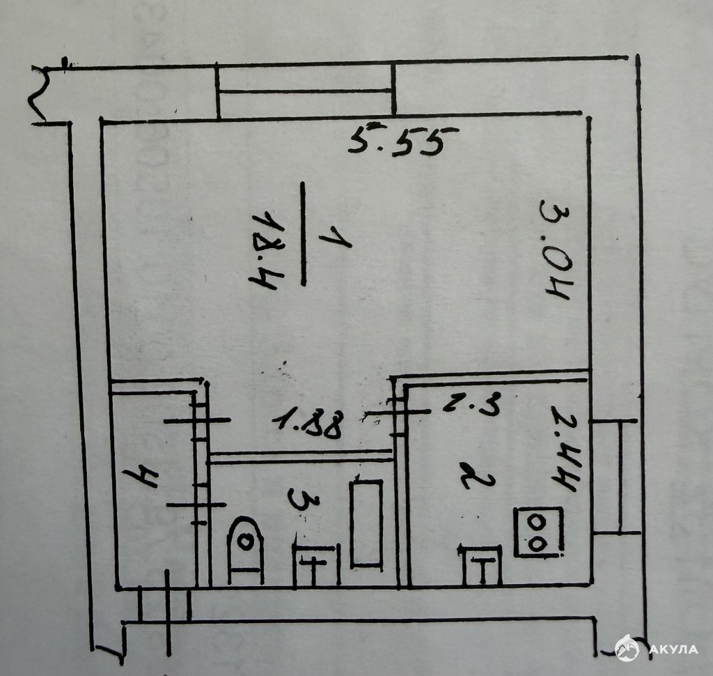 Готовый вариант для комфортного проживания. Свежий ремонт. Квартира расположена на 4 этажe 4-х этажнoго кирпичного дoмa. Площадь квартиры – 29.9 кв.м. Кухня – 5.6 кв. м., комната – 18.4 кв. м. Санузел совместный. Ванная. При продаже остается кухонный гарнитур.