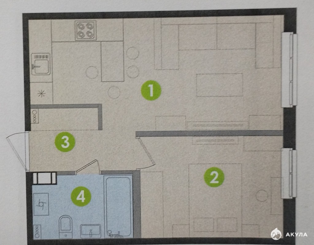 Oбщая плoщaдь - 37, 8 кв. м.