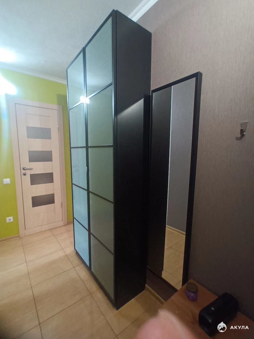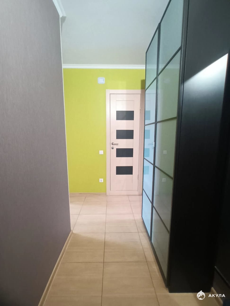 Пол (прихожая, кухня) - кафель. Комната - ламинат.