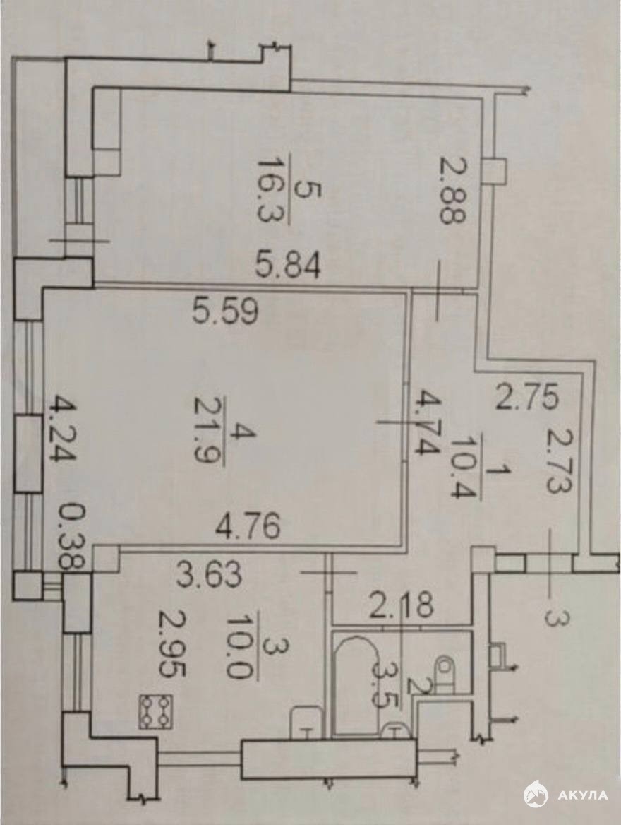 Площадь изолированных комнат: 21, 9 кв.м. и 16, 3 кв.м.