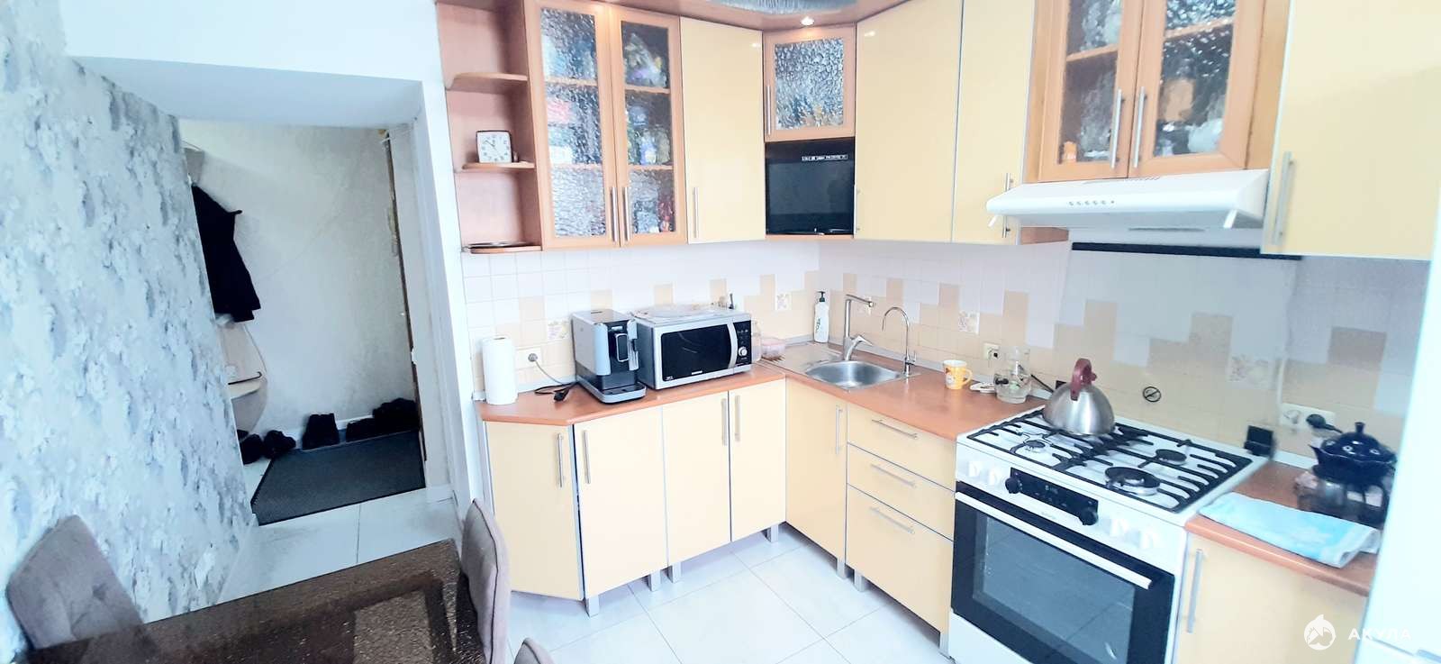 В прихожей и на кухне итальянская плитка-тёплый пол.