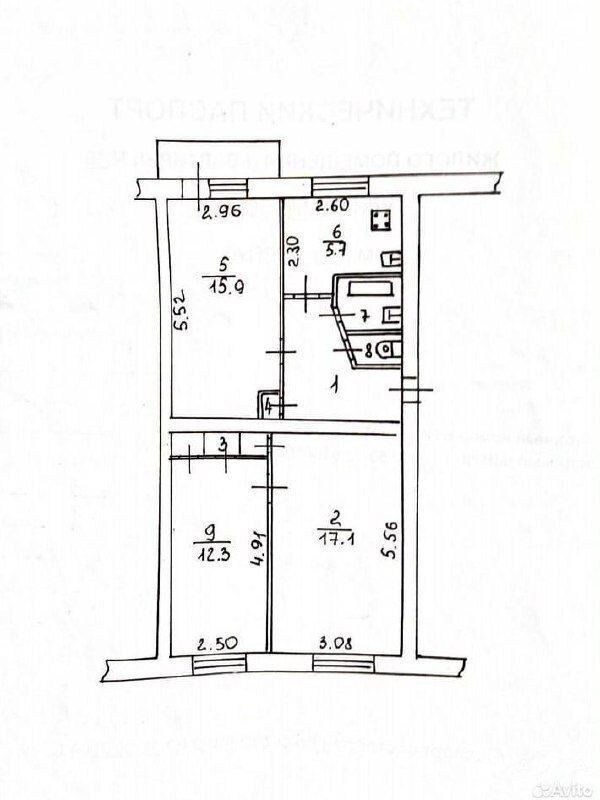 Кухня 5, 7 кв. м., изолированные комнаты 17, 1 ; 15, 9 и 12, 3 кв. м.