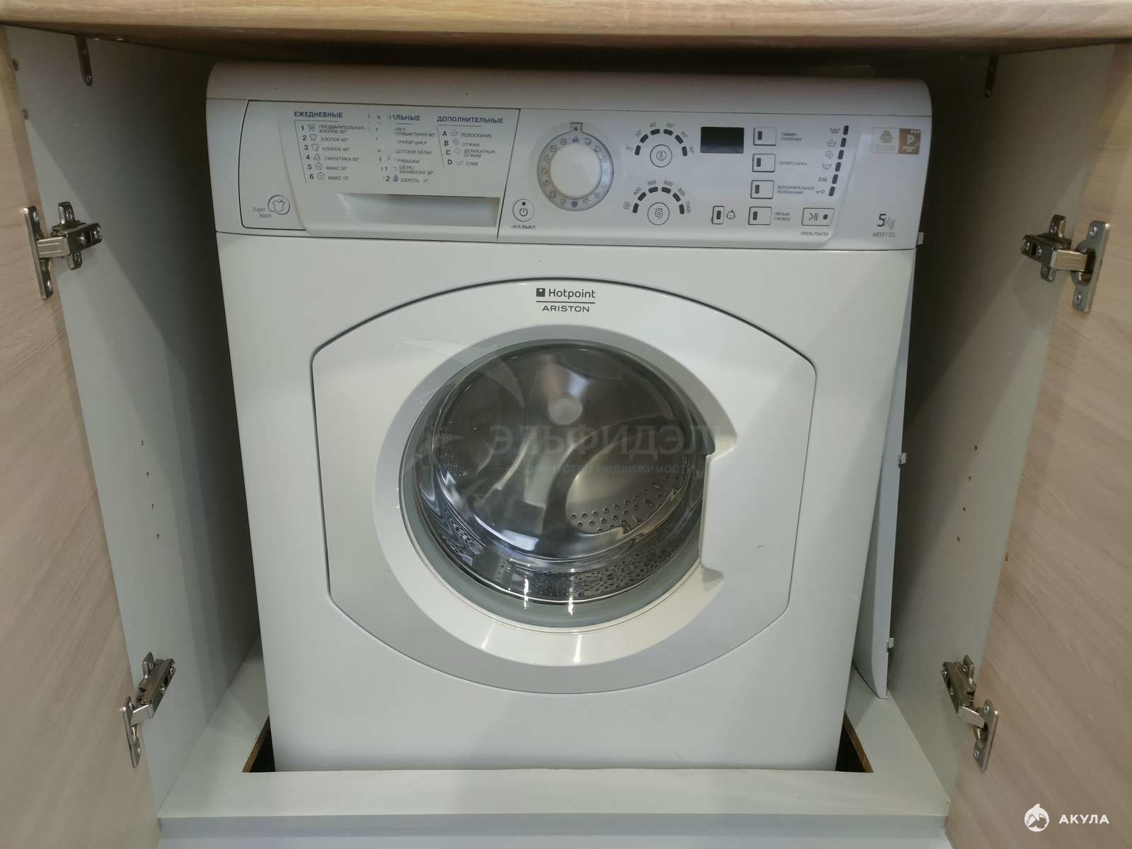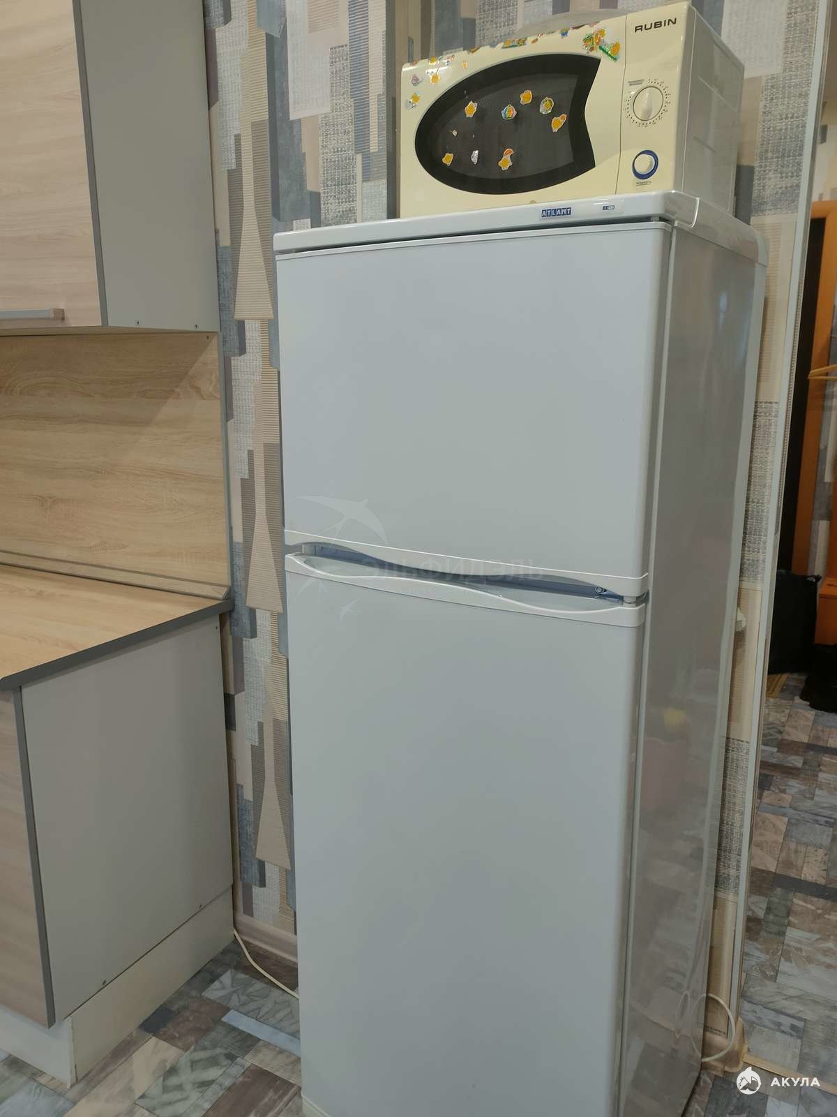 В квартире есть стиральная машина, холодильник, кухонный гарнитур, стол, 2-х спальная кровать, стенка, прихожая.
