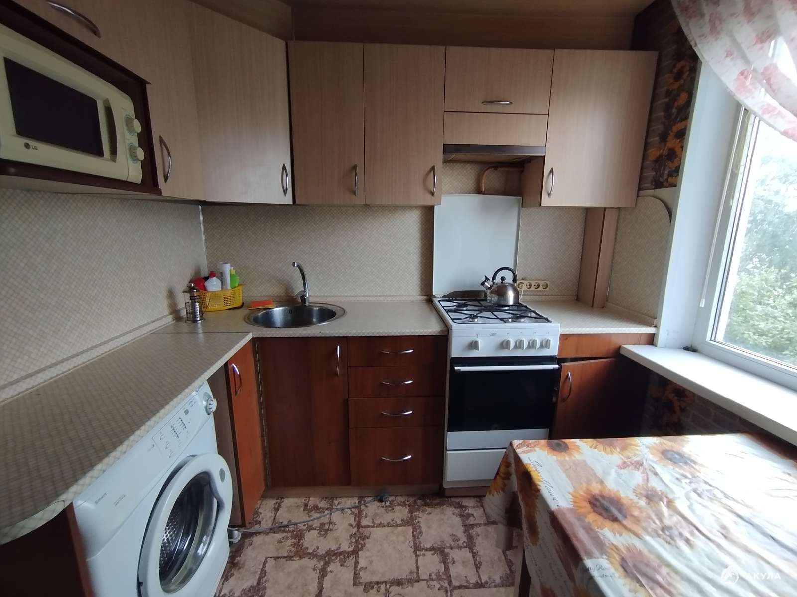 Балкон застеклен, комнаты изолированные, вся необходимая мебель и техника (холодильник, стиральная машина, СВЧ-печь)
