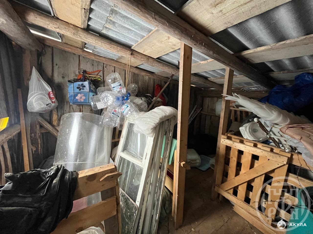 Хоз блок около 30 м2. Разработанный огород с садовыми растениями.